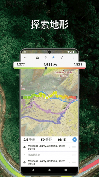在偏远地区、山区或信号不佳的森林中,利用离线地图和 GPS 轨迹记录功能,确保不会迷路。可用于跟踪徒步、骑行、越野跑路线和分析海拔变化。