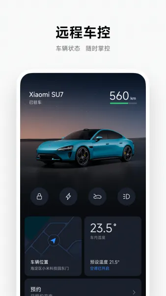小米汽车助手App是小米公司打造的智能购车生态平台!一键获取品牌最新动态,海量车型在线选购,官方配件、智能周边一站式购齐。支持远程控车、智能泊车等黑科技,用车生活更便捷。通过手机即可完成车辆状态查询、空调预启、充电管理等功能,打造人-车-家智能互联新体验。即刻下载,开启小米智能出行生活!