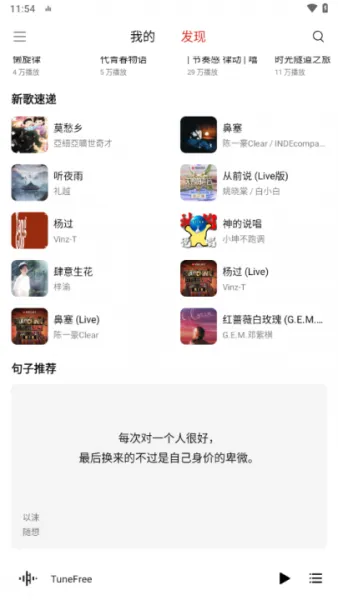 基于用户的听歌历史和偏好,TuneFree会智能推荐适合用户的音乐,帮助用户发现更多好歌。