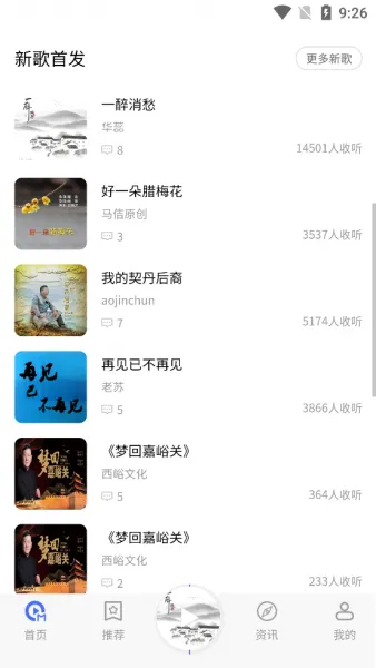 用户们还可以关注“新歌首发”板块,实时收听最新的音乐作品