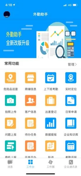 鸿信外勤助手APP是中电鸿信信息科技有限公司推出的专业外勤管理工具。该应用集消息通知、工作台任务管理、企业社交圈和工作通讯录等功能于一体,构建了完整的外勤管理体系。通过实时定位、任务派发、考勤打卡等功能模块,实现外勤人员的高效调度与工作轨迹追踪。平台支持移动审批、数据统计等企业管理需求,帮助企业优化外勤流程,提升团队执行效率,是现代化企业外勤管理的理想选择。