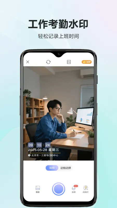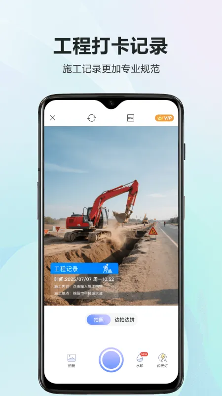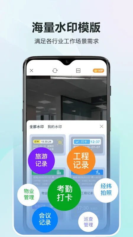 时改打卡水印相机是一款便捷高效的多功能水印工具,支持随时随地拍摄并智能添加时间、地点等专业水印。用户可自由选择百余种行业模板,如工程管理、外勤打卡等场景模板,一键生成真实可靠的水印照片。软件支持自定义编辑水印内容,灵活调整信息展示形式,满足个性化存档需求。海量模板库覆盖各类使用场景,轻松切换适配不同行业需求。高效精准的记录方式,让工作留痕更专业,快来下载体验吧!