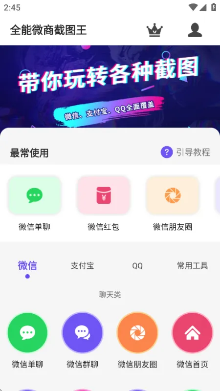 支持微信、支付宝、QQ等多平台截图制作,可自定义头像、名称、聊天记录、转账金额等。更有水印P图、创意二维码生成、语音计算器等实用功能,操作简单,轻松搞定宣传素材 。