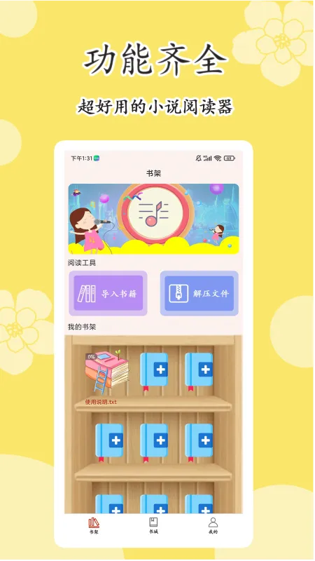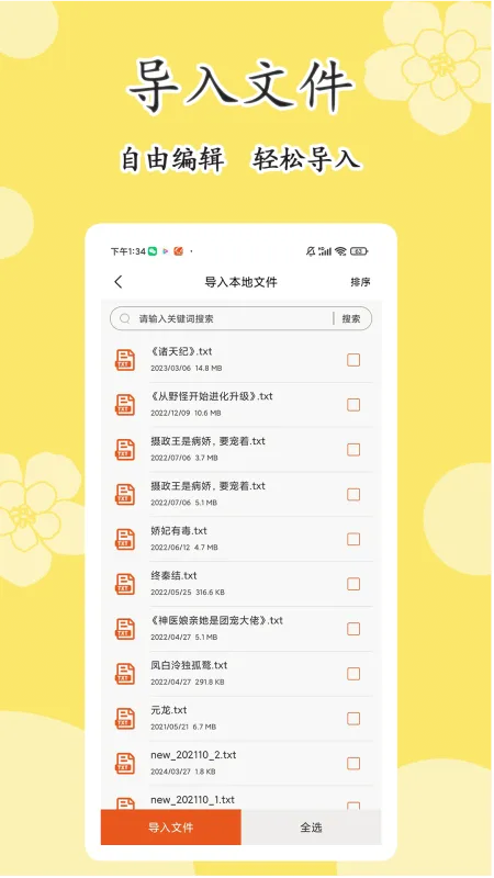 2、文件导入:本地txt文件一键导入,小说畅快阅读。