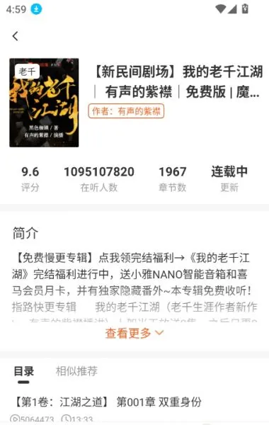 界面无过多广告弹窗等冗余信息干扰,专注于音频内容呈现,让用户沉浸式听书,提升使用好感。