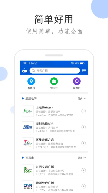 1、自动定位并显示本地广播,让你自由畅听本地的声音;