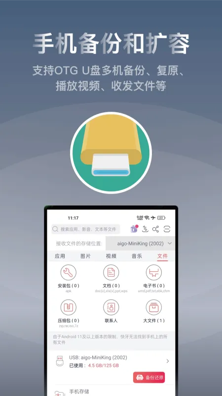 快牙对于传输的文件没有限制。SD卡中储存的任何格式,任何大小的文件均可自由分享。