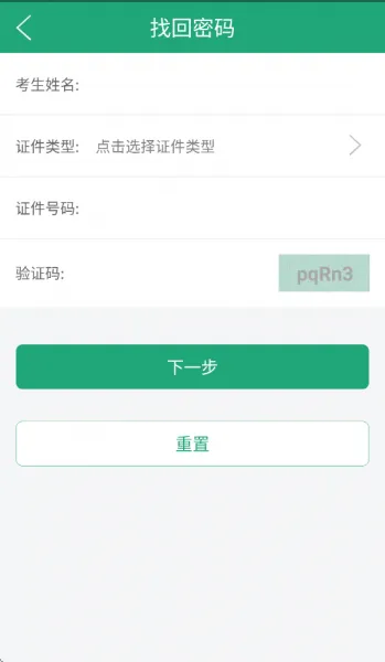 考生根据姓名、证件类型、证件号码进行信息验证后,根据设置的密保问题,可重新设置密码。考生忘记密码,可先通过密码找回功能重置新密码。