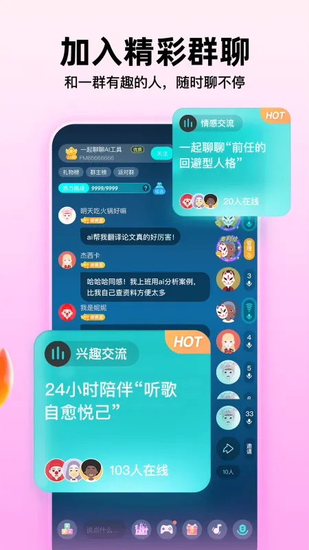 3、群聊派对-随时随地组个局,和志趣相投的朋友开心畅聊