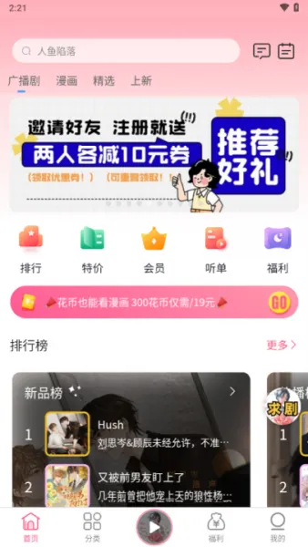 3、在这里通过排行来选择各种广播剧免费听;