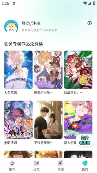3、或在主页点击右侧“免费看漫画”。