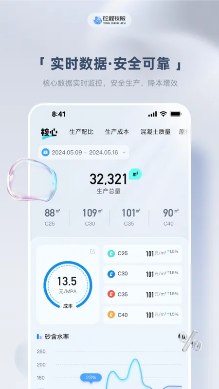 应用程序支持对近期生产数据进行深入分析,识别各个强度混凝土的成本降低情况、生产总量,以及砂石含水率的变化趋势。这些分析结果为企业的生产优化和资源配置提供了科学依据。