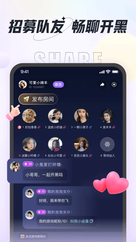 5、多人语音交友倾心,组团开黑,流畅的听觉体验