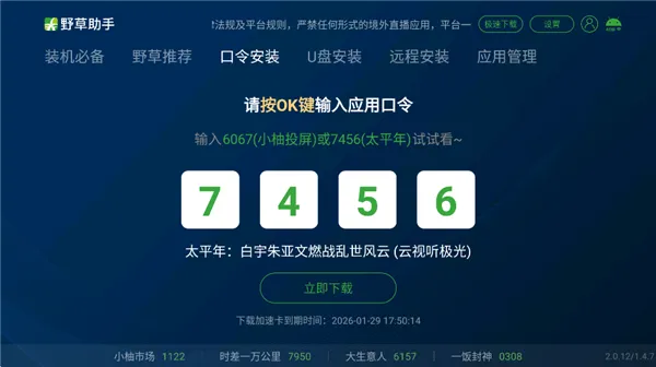 3、为用户提供快速的应用下载体验。同时,除了口令安装外,还支持U盘安装、远程安装和一键直达功能。