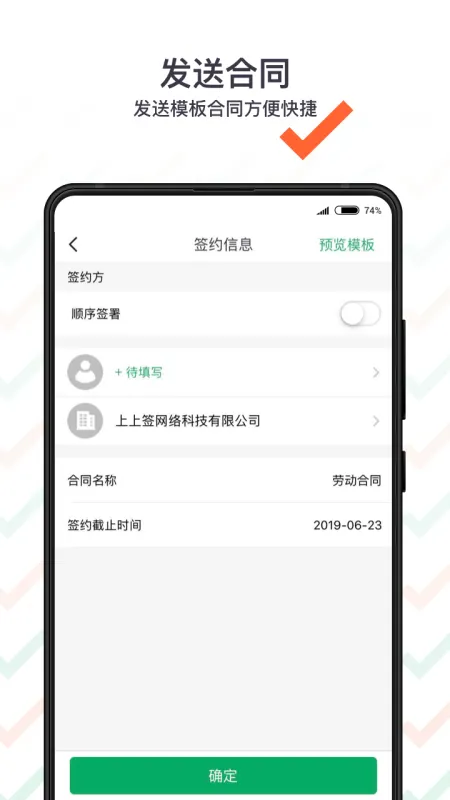 《上上签》是一款专业可靠的电子合同签署平台,内置海量行业签约模板,覆盖企业用工、供应链合作、个人租赁等多元场景。操作极简,支持一键发起、在线签署、实时存证,全程配备专属顾问指导。平台通过国家权威认证,确保每份合同合法有效、不可篡改,切实保障用户权益,助力企业与个人高效、安全、合规地完成数字化签约。