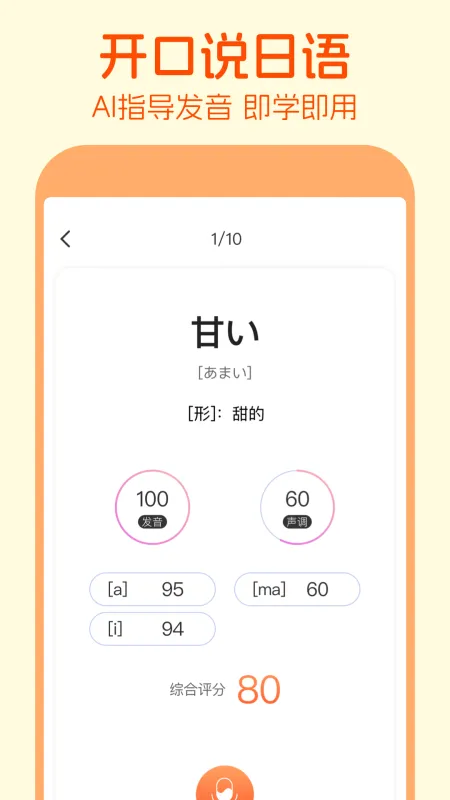 - AI发音打分:给你的日语假名、日语单词、日语短句发音打分。
