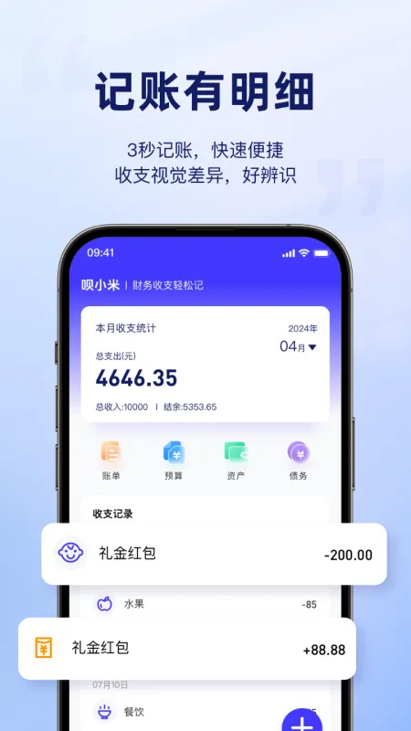 呗小米App,智能管理你的每一笔收支!简洁界面一目了然,支持多账户同步、自动分类统计,消费趋势图表助你清晰掌控财务状况。拍照记账、语音输入更便捷,预算提醒杜绝超支。数据云端备份安全无忧,还有月度报表生成,让你轻松养成理财好习惯。省钱、省心、省时间,小米记账助你迈向财富自由!