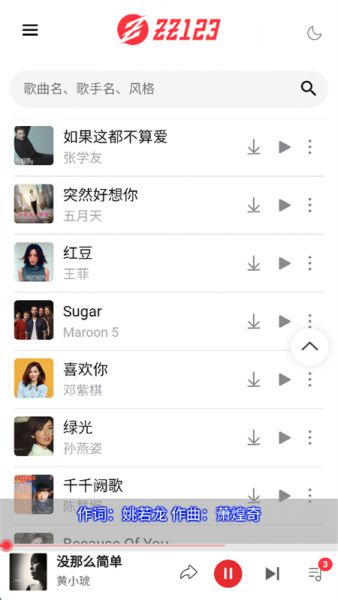 支持下载歌曲,方便用户在没有网络时依然能享受音乐。