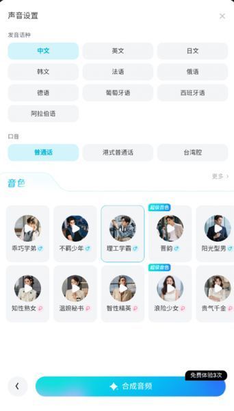 AI帮你一键完成文本配音,主播音色自定义,多种音色任你选。