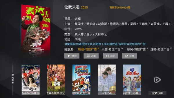 【菜鸟TVApp】专为智能电视打造的免费观影神器!海量影视资源一网打尽,涵盖热门电影、电视剧、动漫、综艺,每日更新不间断。支持1080P高清流畅播放,配备智能分类、收藏夹、历史记录等贴心功能,操作简单界面清爽。菜鸟TV自定义版无广告干扰,无需注册登录,打开即看超省心!无论是追新剧还是重温经典,都能享受大屏沉浸式体验,全家人的娱乐管家!
