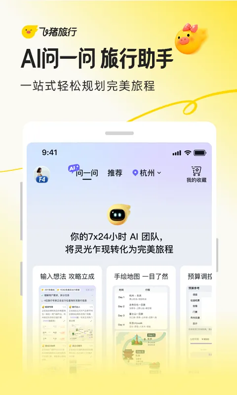 飞猪全新推出AI“问一问”,可随时随地为您挑选有性价比的机票、酒店和目的地,提供更准确、更有温度、可即时预订的旅行方案,帮您省去用多个App查询信息、拼凑攻略、反复比价的麻烦,它好比一支7*24小时在线的AI旅行定制团队,帮您轻松规划完美旅程。