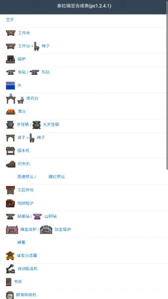 1、泰拉瑞亚合成表手机版包括PC版及手机版完整的物品内容。