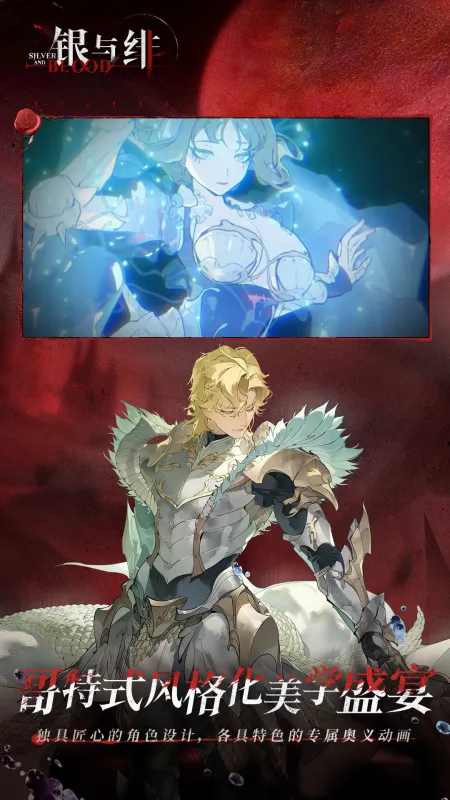 银与绯手游设计充满哥特元素,角色设计融合十字架、蔷薇与铠甲等经典元素,结合了古典与现代潮流风格,个性鲜明。此外,《银与绯》使用了大量手绘动画展示剧情,风格接近水彩画,带来浓郁的动画剧集感,动漫爱好者不可错过。
