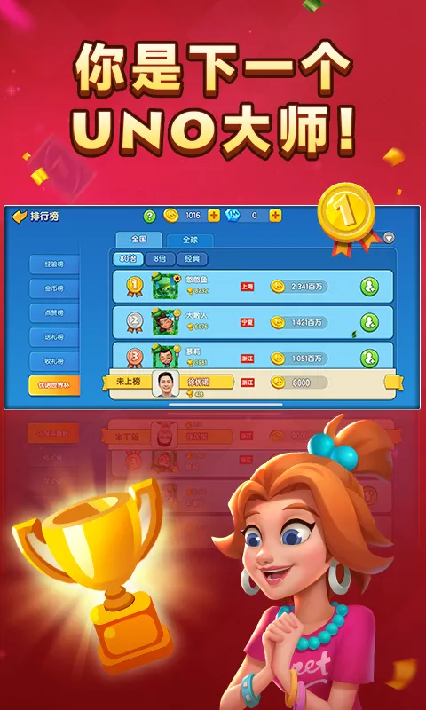 游戏现已开启“UNO世界杯”玩法,全球204个国家和地区的玩家参与,中国区第一名将代表中国出战全球排行。一旦成绩优秀,将触发全服奖励,关注谁能为这无上荣誉而战!此外,我们主打“欢乐竞技”,赛季、锦标赛、大奖赛、巡回赛,各项丰富赛事可随时参加。