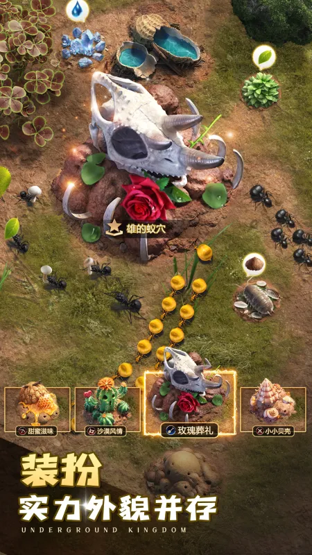 3D写实蚂蚁题材策略手游巨作!在这里,你将化身蚁巢之主,带领蚁族筑巢、繁育、觅食,同时可以通过孵化饲养,组建专属蚂蚁军团,和盟友并肩作战,抵御天敌,打造专属于你的地下蚂蚁王国!