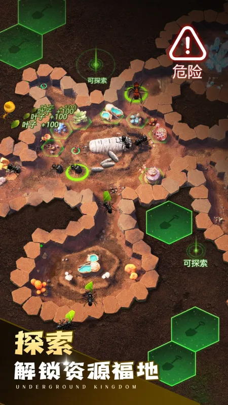蚁巢中隐藏着许多生存必备的资源,化身蚁后,操控工蚁挖掘蚁道,你会发现天然泉眼、优质玉露、鼠妇的群落聚集地......这些都是不可或缺的资源!探索地下世界,从无到有建设你的蚁国!