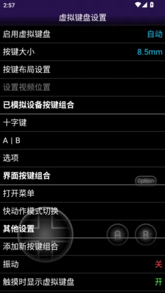 1、在主菜单选择【虚拟键盘设置】调整按键参数。