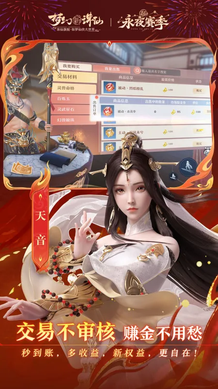 七弦古琴奏响「宫商角徵羽」五音战曲——治疗/输出/御灵全能切换,打破辅助刻板印象;万人新服火爆开启,福利加码:登录送神兽自选印+永久时装+坐骑百连抽、专属捕鱼渔网助力狂赚元宝;周年庆18天登录福利狂欢:周年专属月卡直接领、国风时装「生生不息」免费拿、更有三倍资源掉落+飞天背饰+纪念飞剑;水火元素新赛季焕新之战:赤焰惊涛重塑战局!
