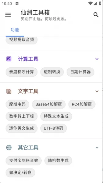 仙剑工具箱App 是一款超实用的 全能工具箱,覆盖 日常、学习、办公 三大场景, 免安装即点即用, 极简高效!内置 二维码生成、单位换算、文本翻译 等 高频实用功能, 界面清爽无广告, 体积小巧不占内存, 手机必备效率神器!无论是学习、工作还是生活,都能帮你 省时省力, 快下载体验吧!