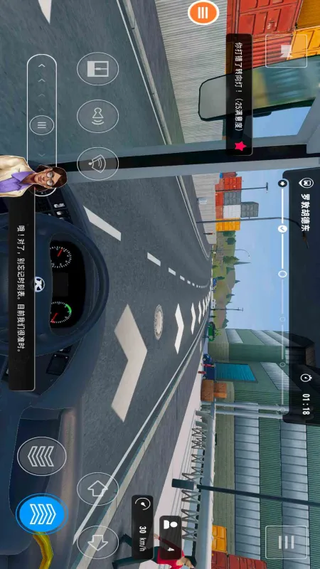 1、下载游戏后打开游戏,游戏中分别是油门,刹车,方向,挂挡