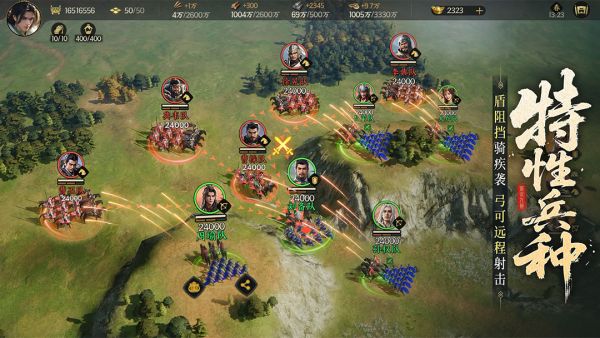 三国战役谋略至上!游戏支持多支队伍同时交战,并可实时操控每一支队伍行军路线、集火目标,实现类moba的战中微操,打破数值疆界,部队武将即使是白板,只要人多够活跃,也可强杀满红大佬!