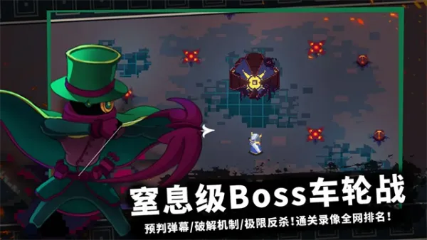 4、窒息级boss车轮战:预判弹幕,破解机制,极限反杀,通关录像全网排名。