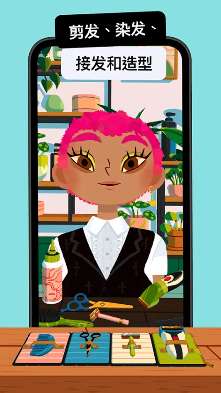 《托卡美发沙龙4》是一款充满童趣与创意的模拟经营游戏!在这里,你将化身顶尖造型师,在专属美发沙龙中自由设计发型、修剪胡须、搭配配饰、冲洗造型,甚至拍照留念。四大功能工作站——设计区、胡须站、造型台、洗护站与摄影角,环环相扣,激发无限搭配灵感。每位顾客都是你的创意画布,随心打造独一无二的潮流形象,让沙龙人气飙升!