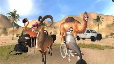 你不再只是撞翻摊位的捣蛋鬼,而是掌控一支‘动物特工队’的荒诞指挥官。火烈鸟展开粉红双翼滑翔穿楼,海豚驱动改装轮椅垂直攀墙,骆驼蓄力喷射高压水弹清障,而那只英俊山羊,则用弹性舌头卷走关键道具、弹飞NPC,甚至接管人类意识干扰追捕节奏。