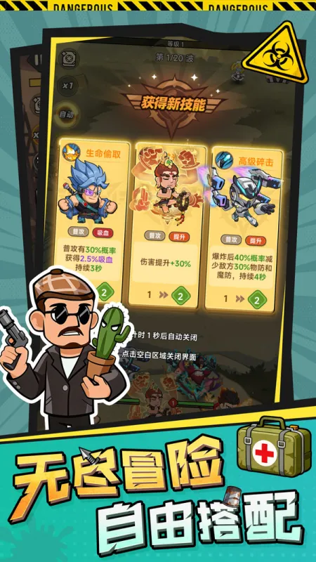 谁说末日必须压抑?在这里,西装革履的BOSS可能跳着踢踏舞冲来,绷带僵尸会在医院门口做拉伸热身,小丑丑角的扑克牌魔术能让你当场眩晕三秒!画风沙雕但手感扎实,技能逗趣但机制硬核——压力?不存在的。快乐,才是最强防御buff!
