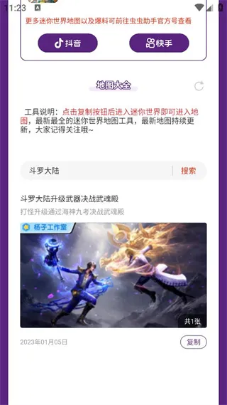 迷你世界地图分享工具(虫虫助手迷你世界地图分享工具)是一款游戏辅助类地图工具,迷你世界的地图设计更是丰富多彩,充满挑战。