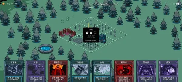 2、游戏的下面有多个卡牌,作用都不同,比如可以建造铁匠铺、侦查塔等。