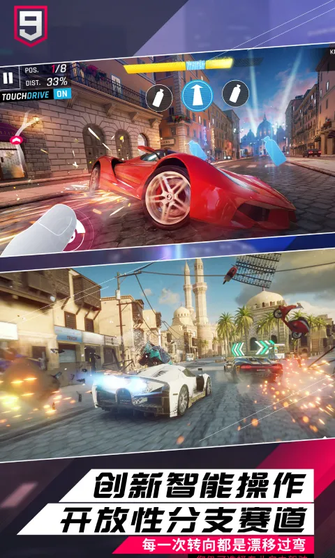 掌握创新的TOUCH DRIVE,这是一种新的控制方案,可简化转向,让玩家专注于赛车的乐趣。您也可以切换到手动控制(倾斜或轻敲转向),并学习如何像专业沥青赛车手一样驾驶。