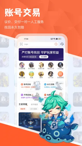 为玩家提供手游、端游、网游交易产品,提供账号交易,账号回收,买号,卖号,租号,等游戏服务。